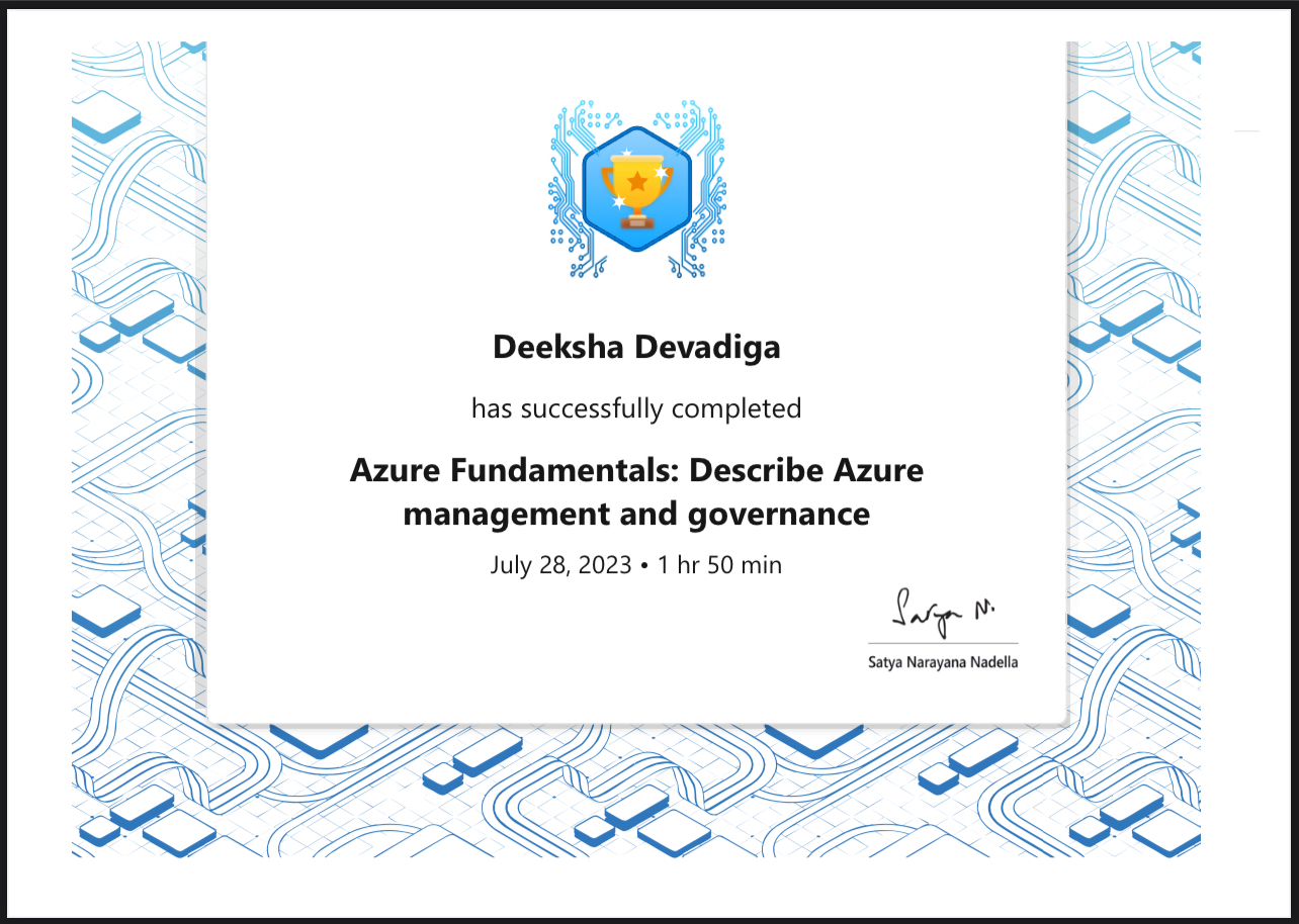 This workshop was all about Azure management and governance. It helped me learn how to efficiently handle Azure resources, ensuring they are used optimally and in compliance with organizational policies. This knowledge improves operational efficiency and security in the cloud.